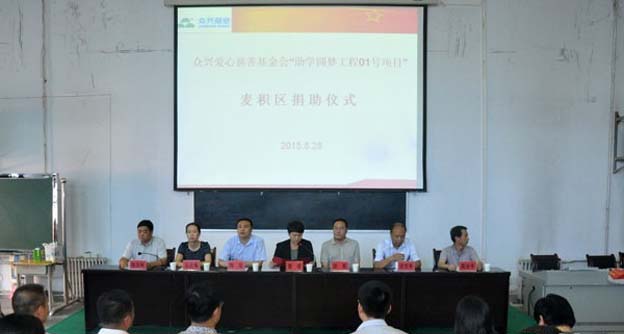 2015年8月28日,由眾興菌業(yè)時任董事長陶軍發(fā)起成立的“天水眾興愛心慈善基金會”,在天水市二中舉行了“助學圓夢工程01號項目”首批資助款336000元的發(fā)放儀式。