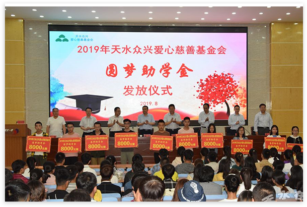 ● 以“天水眾興愛(ài)心慈善基金會(huì)”為載體,以“弘揚(yáng)正氣、奉獻(xiàn)愛(ài)心,扶貧濟(jì)困、救孤助學(xué)”為宗旨,用愛(ài)心守護(hù)未來(lái)。